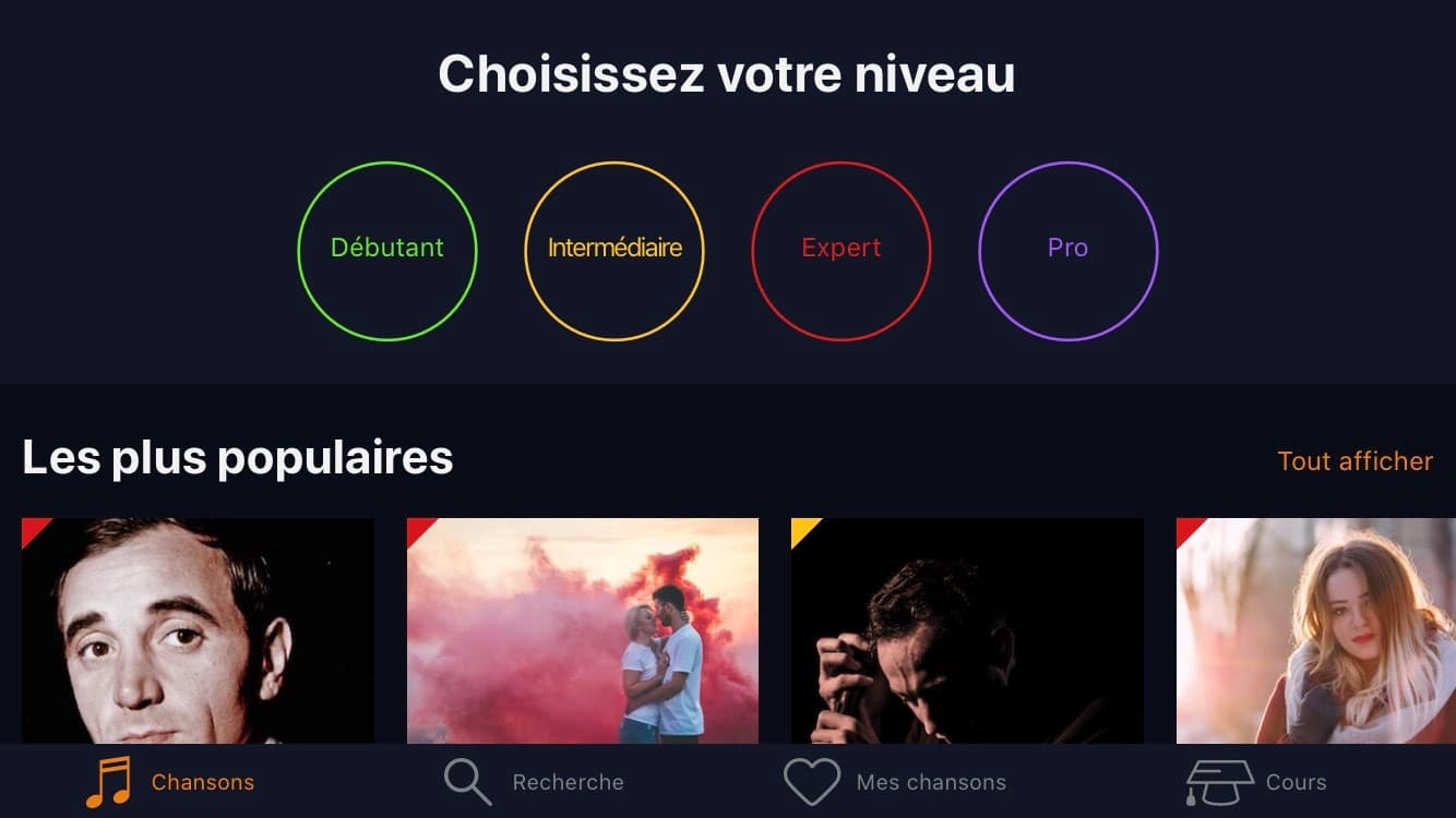 Recherchez des chansons par genre et par niveau de difficulté