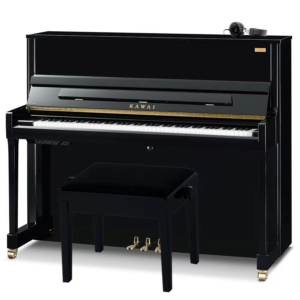 Vous pourrez aussi enregistrer vos morceaux, jouer des fichiers audio sur votre piano grâce à des appareils connecté en Bluetooth augmentant ainsi votre expérience et votre plaisir personnel. Tous les pianos K300 AURES 2 et AnyTime ATX4 intègrent les systèmes de blocage acoustique spécialement développés par Kawai qui empêchent efficacement les marteaux de frapper les cordes lors du jeu en mode silencieux.