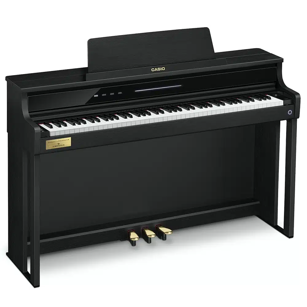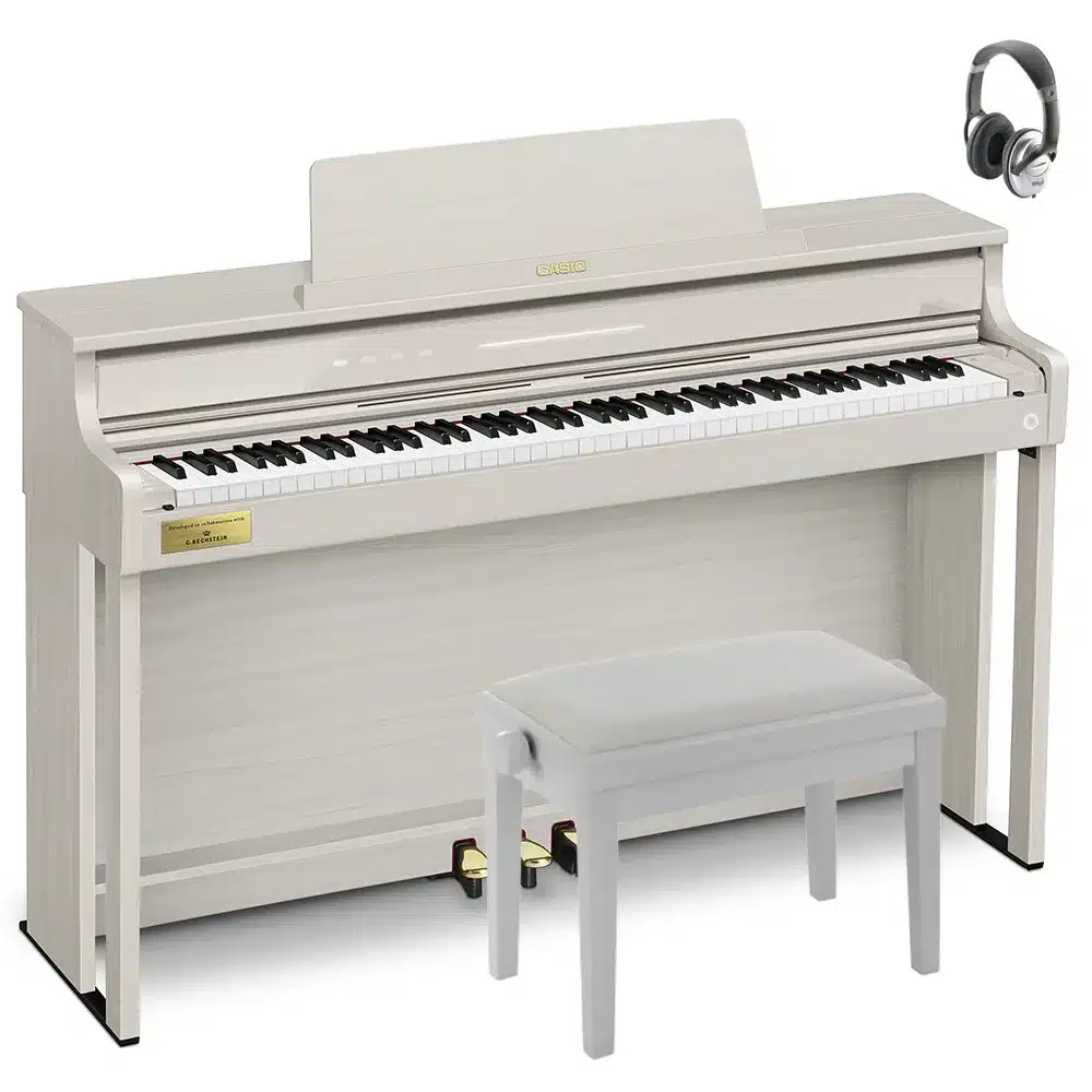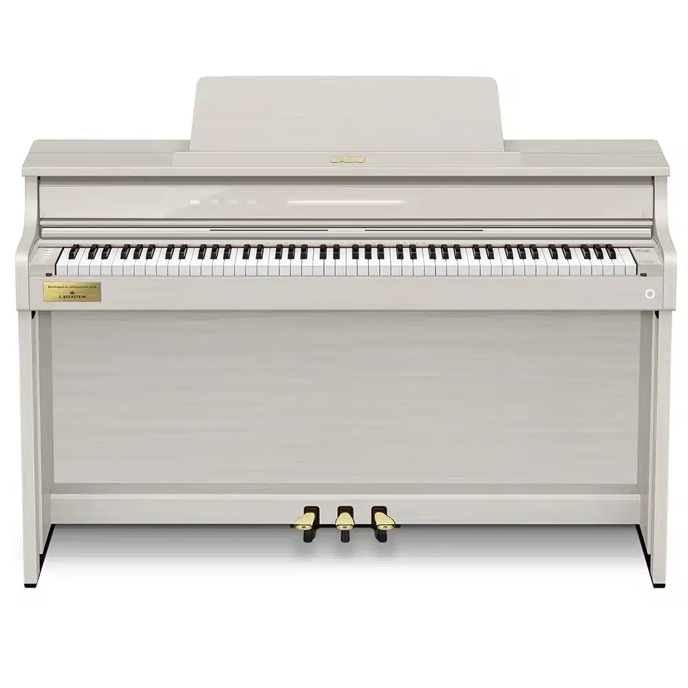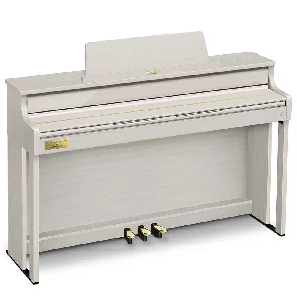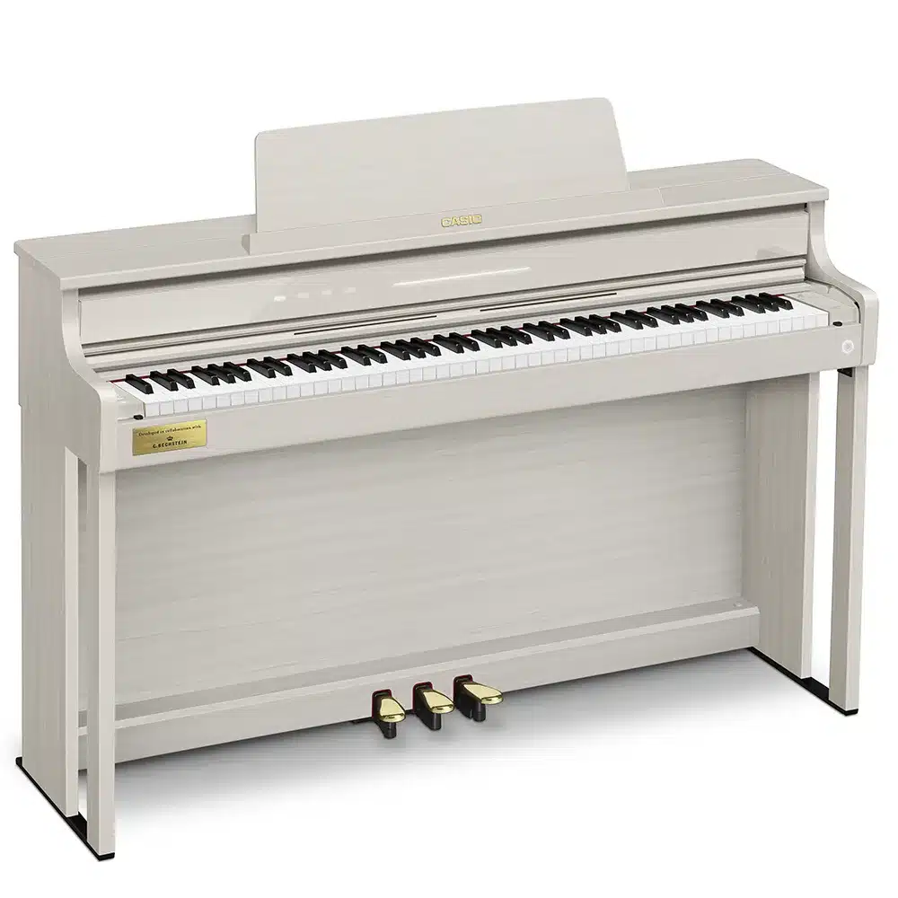 Le Casio Celviano AP-750 se distingue par ses sonorités authentiques de pianos à queue, issues des célèbres Berlin Grand, Hamburg Grand et Vienna Grand. Développées en collaboration avec le prestigieux fabricant C. Bechstein, ces sonorités offrent une richesse de nuances et un réalisme inégalé, capturant toute la beauté des grands pianos de concert. Grâce à la technologie « AiR Grand Sound Source », les musiciens peuvent profiter d’une reproduction fidèle des tonalités, pour des performances aussi expressives que puissantes. Ce piano numérique est idéal pour les pianistes exigeants cherchant à recréer l’expérience d’un véritable piano à queue chez eux​.
