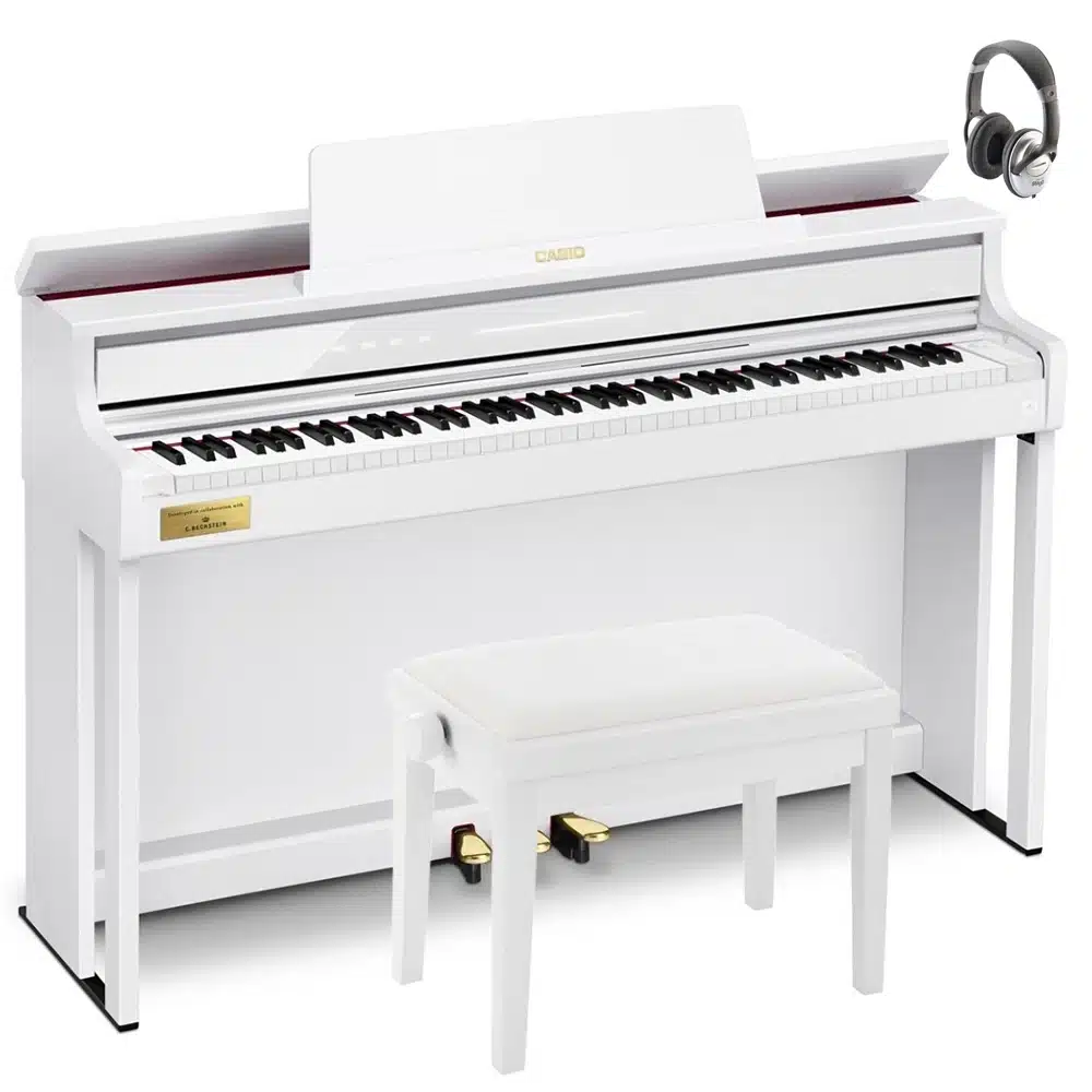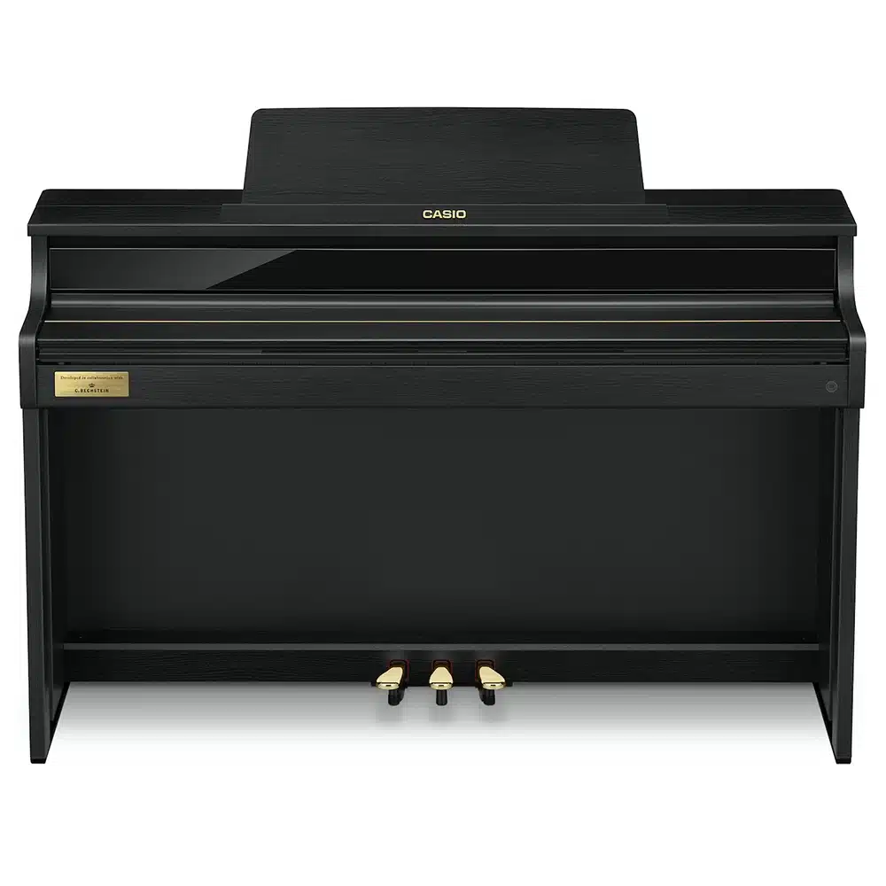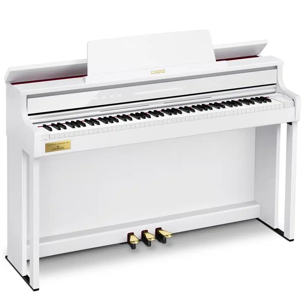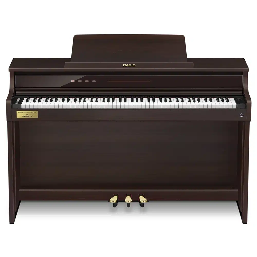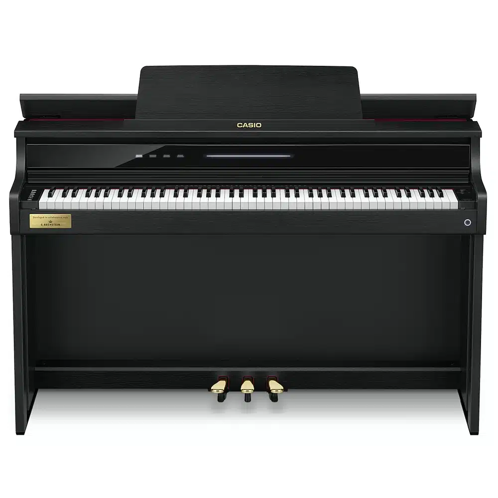 Le Casio Celviano AP-750 se distingue par ses sonorités authentiques de pianos à queue, issues des célèbres Berlin Grand, Hamburg Grand et Vienna Grand. Développées en collaboration avec le prestigieux fabricant C. Bechstein, ces sonorités offrent une richesse de nuances et un réalisme inégalé, capturant toute la beauté des grands pianos de concert. Grâce à la technologie « AiR Grand Sound Source », les musiciens peuvent profiter d’une reproduction fidèle des tonalités, pour des performances aussi expressives que puissantes. Ce piano numérique est idéal pour les pianistes exigeants cherchant à recréer l’expérience d’un véritable piano à queue chez eux​.