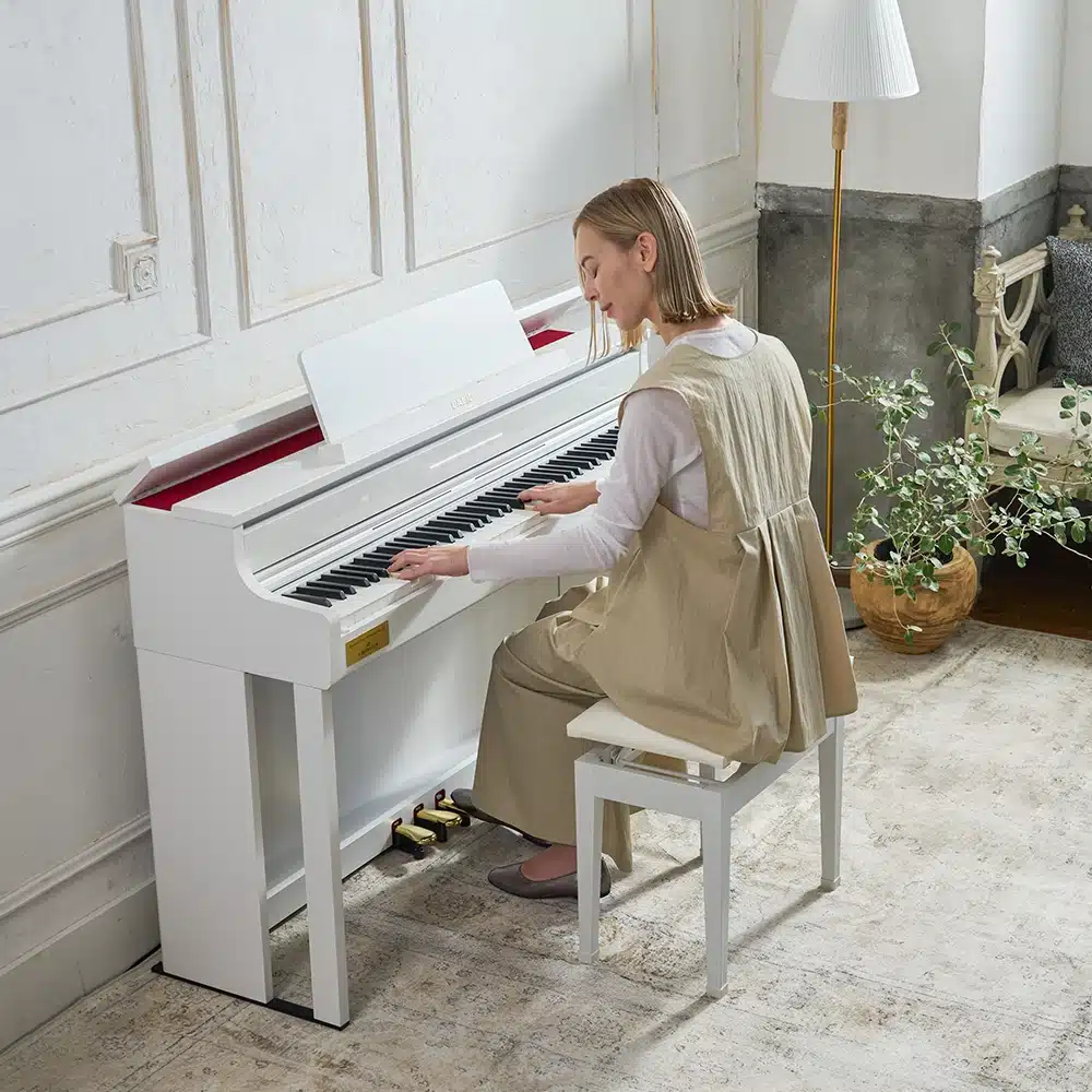 Enfin, le Casio AP-750 présente un design élégant et sobre, disponible en finition noire, marron, gray beige ou blanc parfaitement adapté à tout intérieur. Avec des options de connectivité avancées, il permet de se connecter facilement à des applications pédagogiques ou de création musicale via USB ou MIDI, facilitant ainsi l’enregistrement, l’apprentissage et la composition.