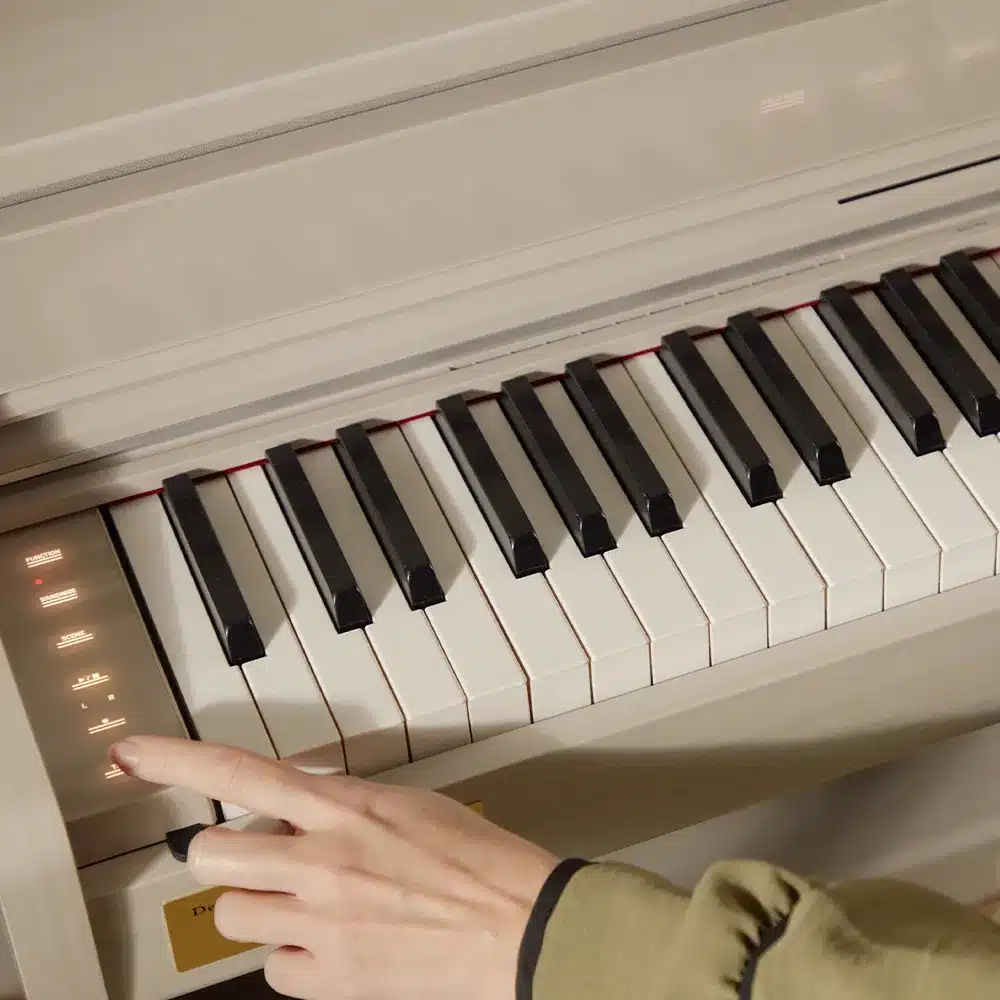 L’AP-750 dispose de fonctionnalités telles que le « Lid Simulator », qui permet de simuler l’ouverture du couvercle d’un piano à queue pour modifier la diffusion sonore en fonction des nuances de jeu. De plus, des résonances spécifiques comme la « String Resonance » et la « Damper Resonance » ajoutent une profondeur acoustique en reproduisant les résonances des cordes et des pédales, pour un réalisme sonore encore plus poussé. Ces fonctionnalités permettent une expérience de jeu riche et modulable, adaptée à tous les styles de musique​.