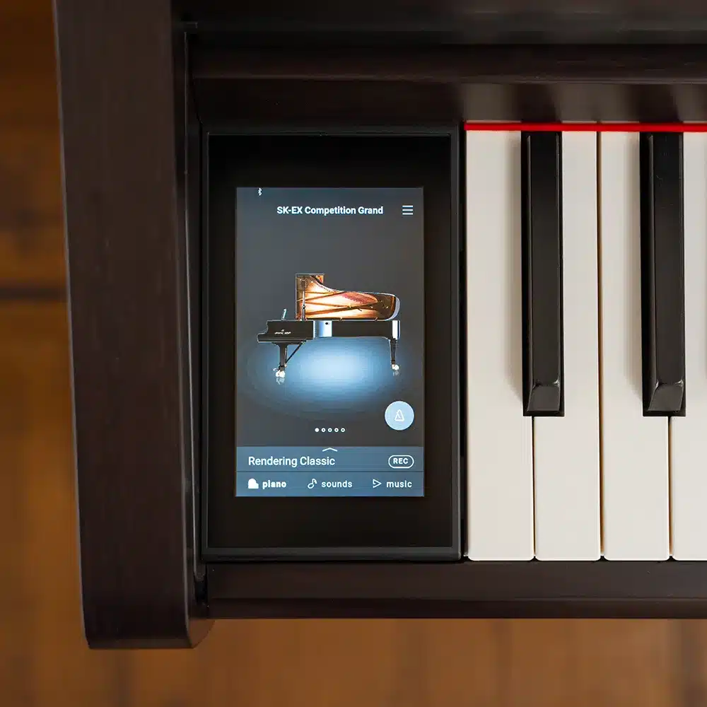 La technologie SK-EX Rendering du Kawai CA-701 utilise un échantillonnage multicanal sur 88 notes pour capturer les moindres détails du piano à queue Shigeru Kawai EX, un modèle emblématique largement apprécié dans les salles de concert. Associée à des algorithmes de modélisation de la résonance, cette technologie recrée avec précision les interactions complexes des cordes et des étouffoirs d’un piano acoustique, offrant ainsi un réalisme sonore inégalé. Que ce soit pour les sonorités riches et chaudes du SK-EX Concert Grand ou le timbre clair et brillant du SK-EX Competition Grand, cette technologie garantit une reproduction fidèle des nuances et des dynamiques de chaque note.