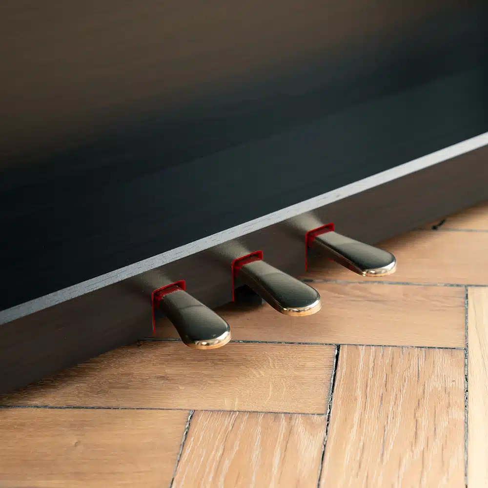 Sur un piano acoustique, chaque touche met en mouvement un marteau qui frappe une corde : c’est ce poids réel qui donne la sensation de “résistance” sous les doigts. Le RHIII imite cela avec des marteaux gradués (plus lourds dans le grave, plus légers dans l’aigu) et sans ressorts inutiles. Résultat : un retour de touche fluide et naturel, idéal pour progresser techniquement (gammes, trilles, répétitions rapides).