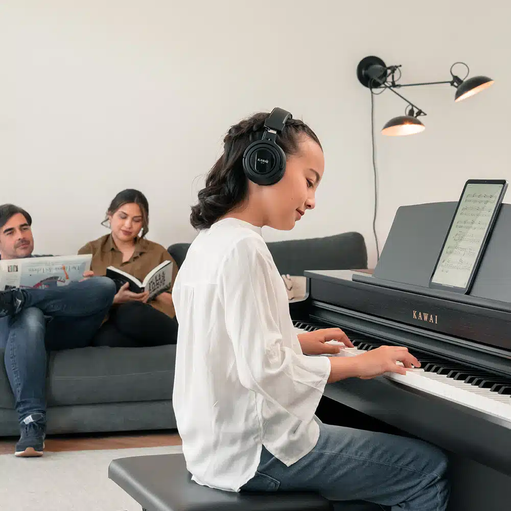 Kawai a enregistré séparément les 88 touches de ses pianos de concert Shigeru Kawai SK-EX (grand queue 2,75 m), SK-5 (studio) et Kawai EX, à différents niveaux de dynamique (du pianissimo au fortissimo). Cela évite le “tirage” d’un même échantillon sur plusieurs notes et conserve la personnalité harmonique de chaque registre. La technologie Progressive Harmonic Imaging (PHI) assure des transitions douces entre les niveaux de jeu : pas d’effet de palier quand vous jouez plus fort ou plus doucement, juste une courbe naturelle comme sur l’acoustique.