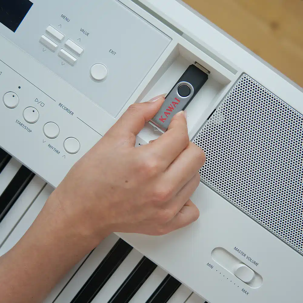 Cette connectivité permet d’exploiter des applications pédagogiques comme Kawai PianoRemote pour iOS/Android, facilitant les réglages et la lecture de contenus musicaux.