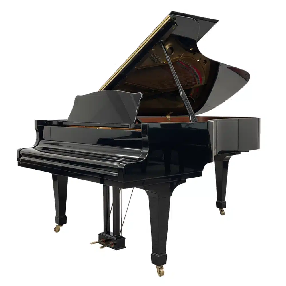 La mécanique d’un piano à queue permet une répétition plus rapide et un contrôle plus fin des nuances qu’un piano droit. Ce modèle offre un toucher précis, permettant un jeu nuancé et expressif.