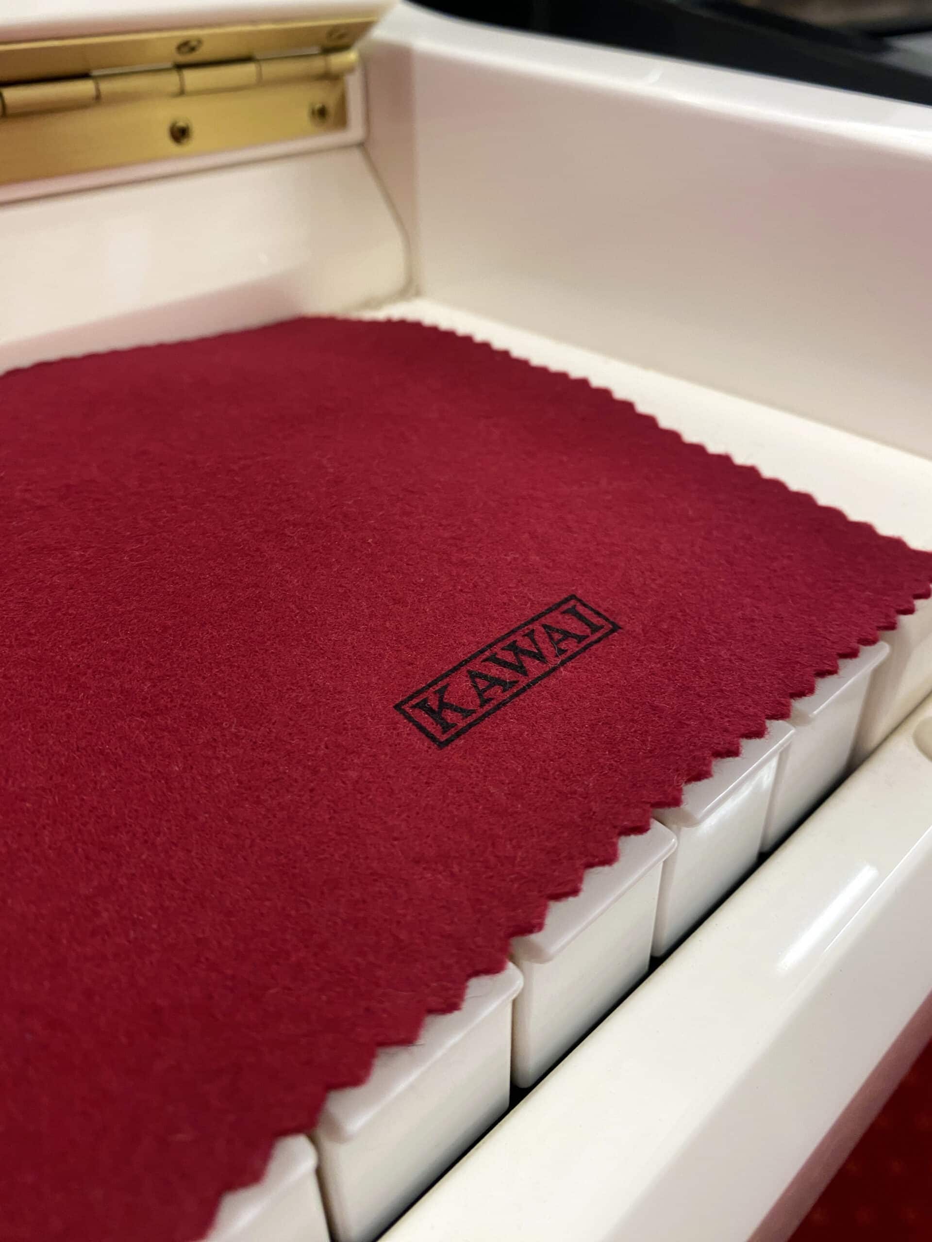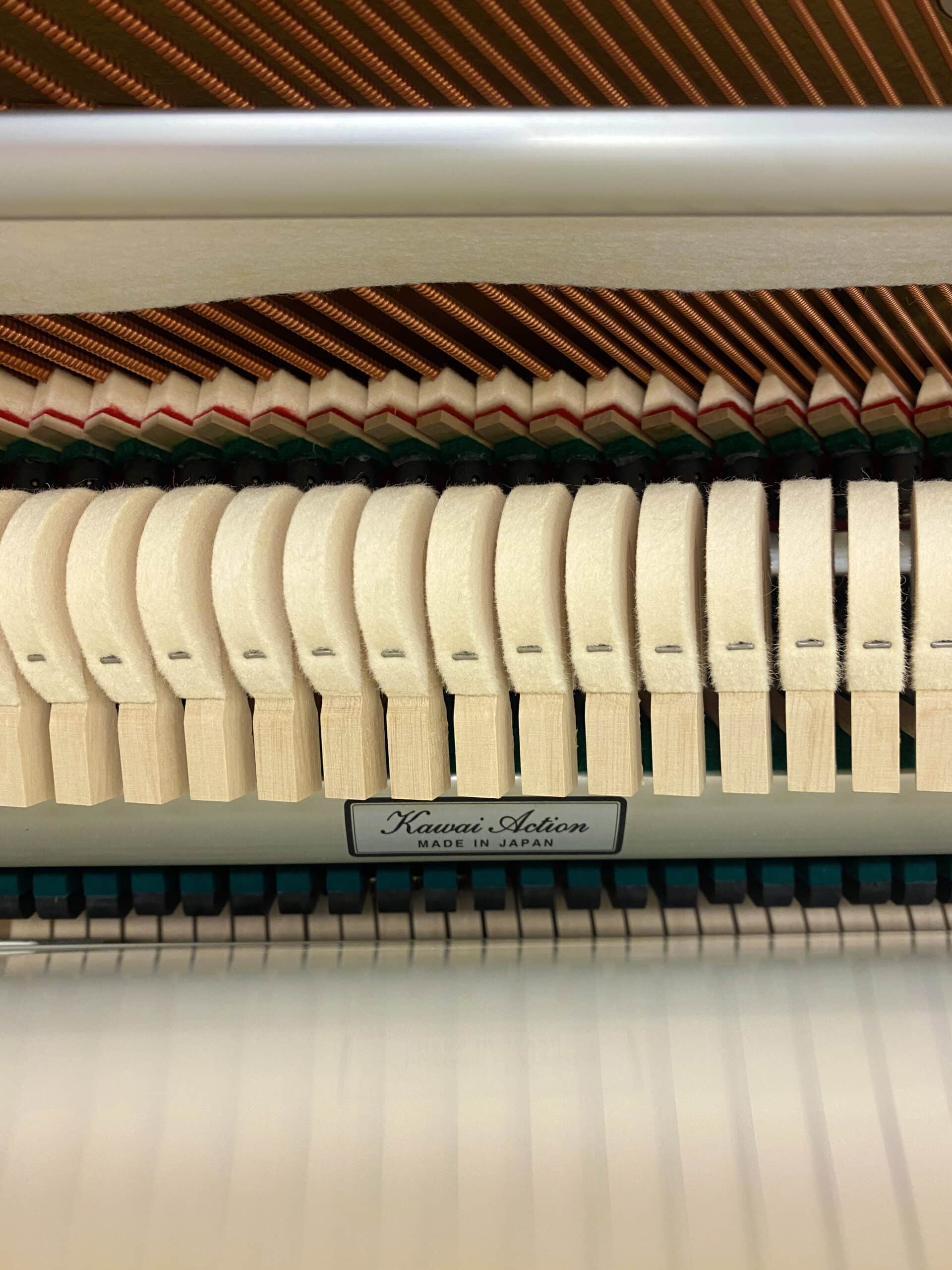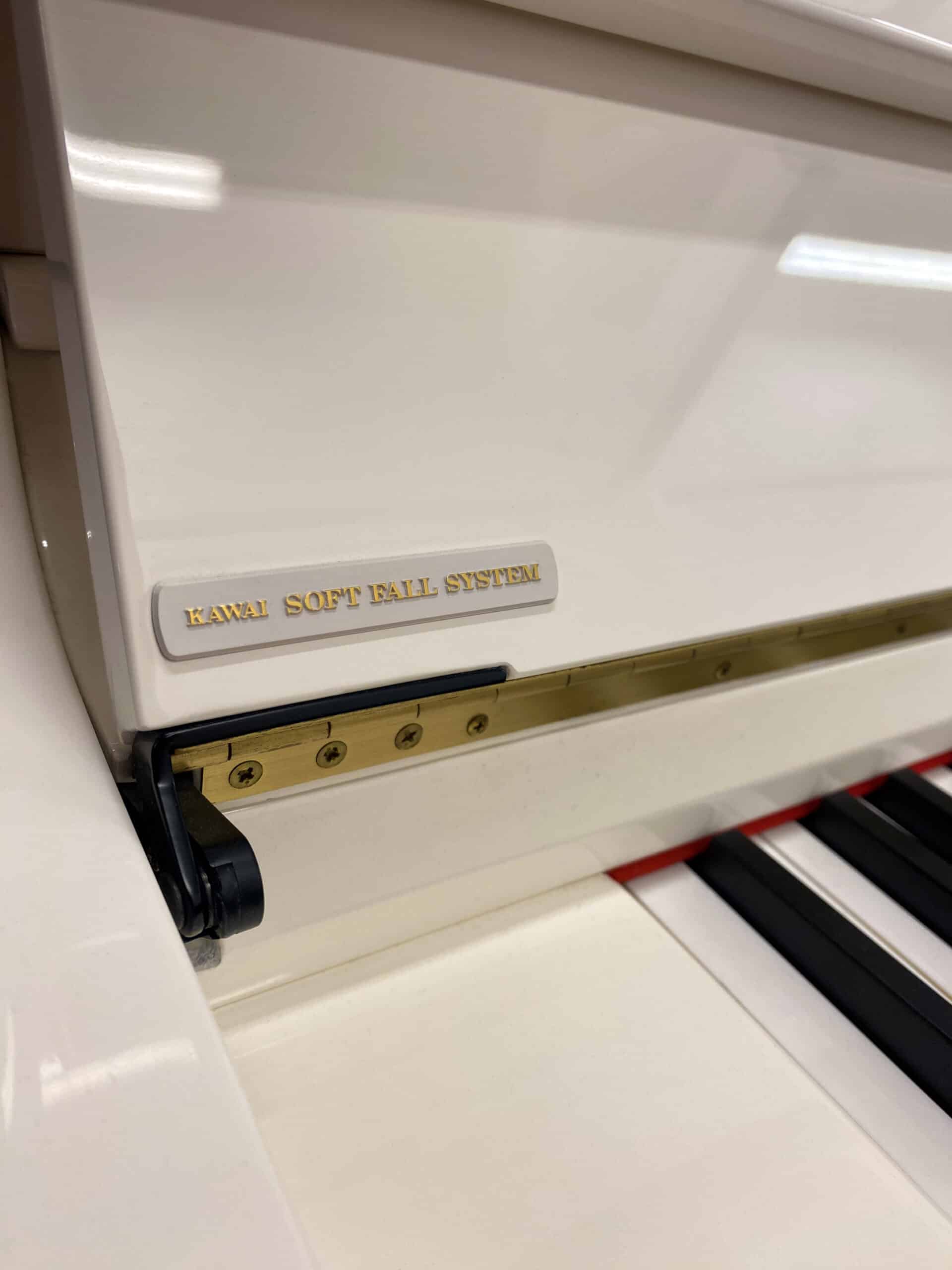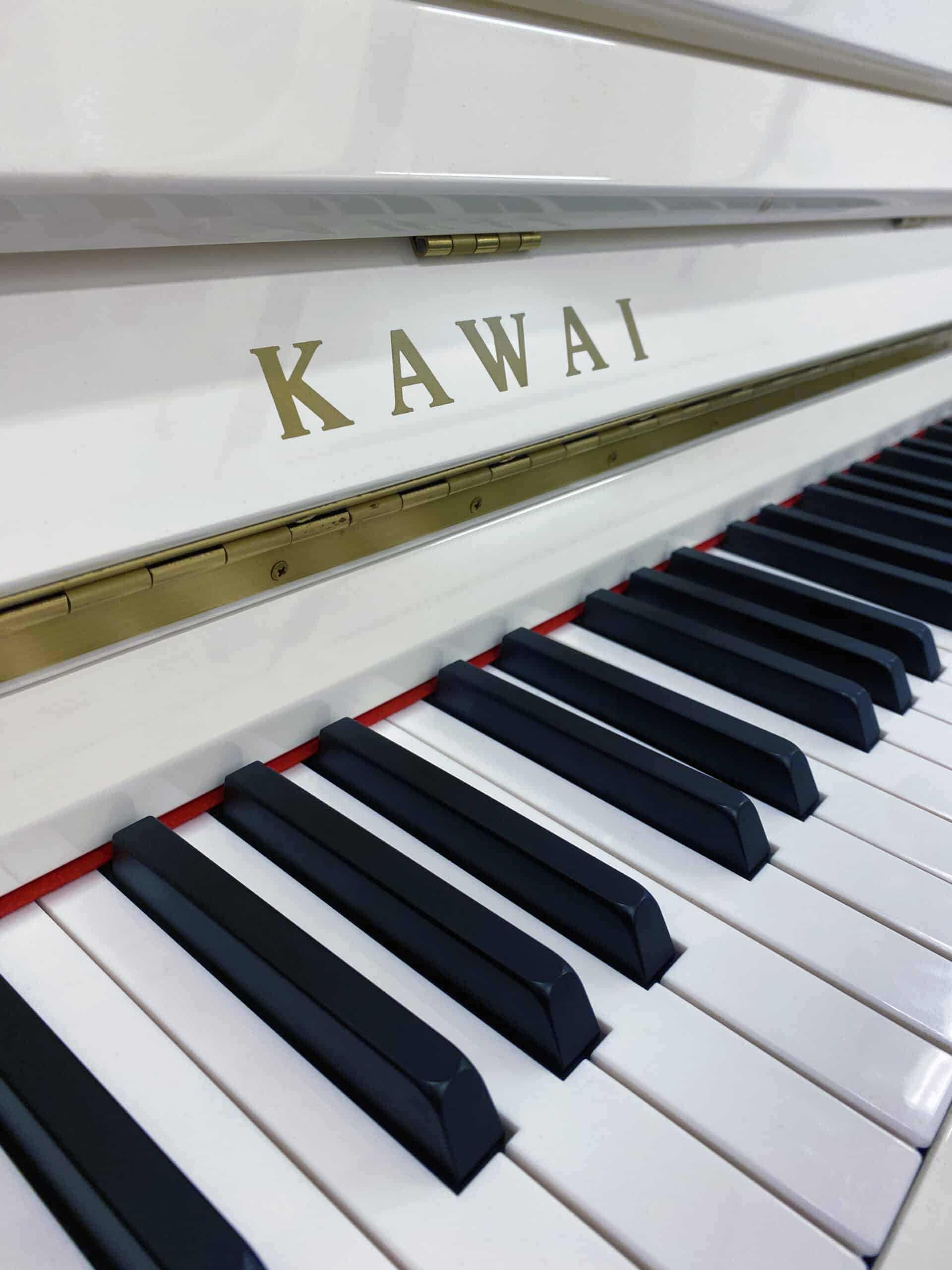 Piano droit KAWAI modèle K2 n° F 028 370 en finition Blanc Laqué proposant une mécanique KAWAI précise et robuste ainsi que les meilleurs matériaux.