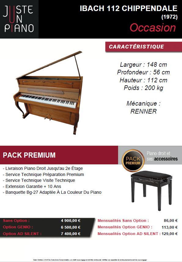 Caractéristiques du Piano IBACH 112 Chippendale Noyer Satiné – Piano droit OCCASION