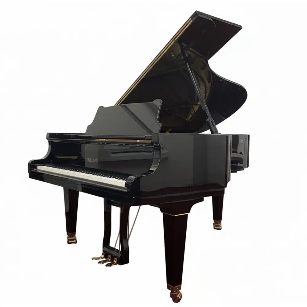 Avec son gabarit de piano demi-queue, cet instrument atteint un équilibre parfait entre puissance, ampleur sonore et intégration dans un intérieur. Il s’adresse aux mélomanes souhaitant un vrai piano à queue sans basculer dans les dimensions d’un piano de concert. Sa présence visuelle, renforcée par le noir laqué, en fait une pièce maîtresse de décoration, tandis que sa conception soignée garantit une musicalité remarquable dans une grande variété d’environnements : salons, salles de musique, petites scènes, lieux de réception ou studios.