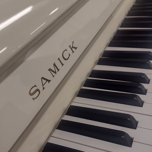 Piano SAMICK Modèle JS112 n° IJNA00772 en finition Blanc Laqué proposant une mécanique SAMICK précise et des meilleurs matériaux.